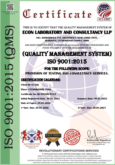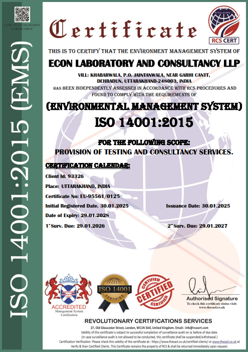 ECON has been providing environmental and building material testing and consultancy services in India since its establishment in 2012. As a company, ECON is committed to being the most innovative and diversified environmental and building material testing laboratory and consultancy firm in the industry, striving to set the benchmark for quality. Utilizing modern analytical techniques, high-quality instrumentation, and advanced information management systems, the laboratory is capable of providing a wide range of services for industries and development activities, helping ensure safety and sustainability.